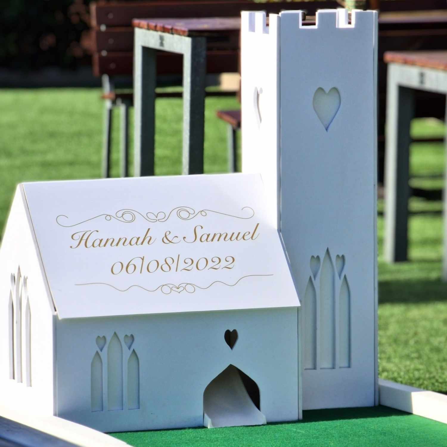 L'obstacle Church est une pièce maîtresse idéale pour votre parcours, offrant un toit personnalisé en option pour une touche unique lors d'une journée spéciale. Cette fonctionnalité comprend un pont My Mini Golf positionné au centre de l'église, guidant la balle pour qu'elle émerge du côté opposé.