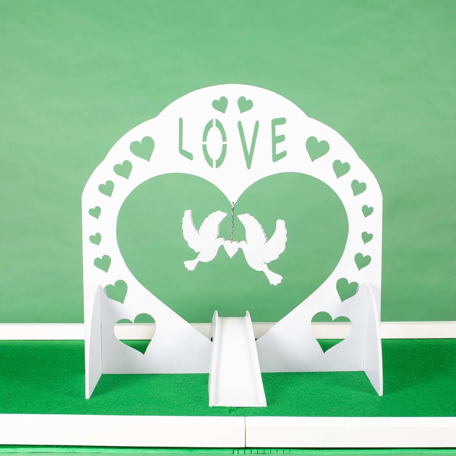 L'obstacle sur le thème de l'amour, conçu par notre équipe interne, est un complément idéal pour votre parcours de mini-golf inspiré du mariage ! Doté de détails complexes découpés à la main, cet obstacle complète magnifiquement le parcours. Il se marie exceptionnellement bien avec l'obstacle pont My Mini Golf pour ajouter un peu de plaisir supplémentaire et augmenter le défi, en introduisant de la profondeur dans le trou et en élevant la créativité de la conception globale du parcours.